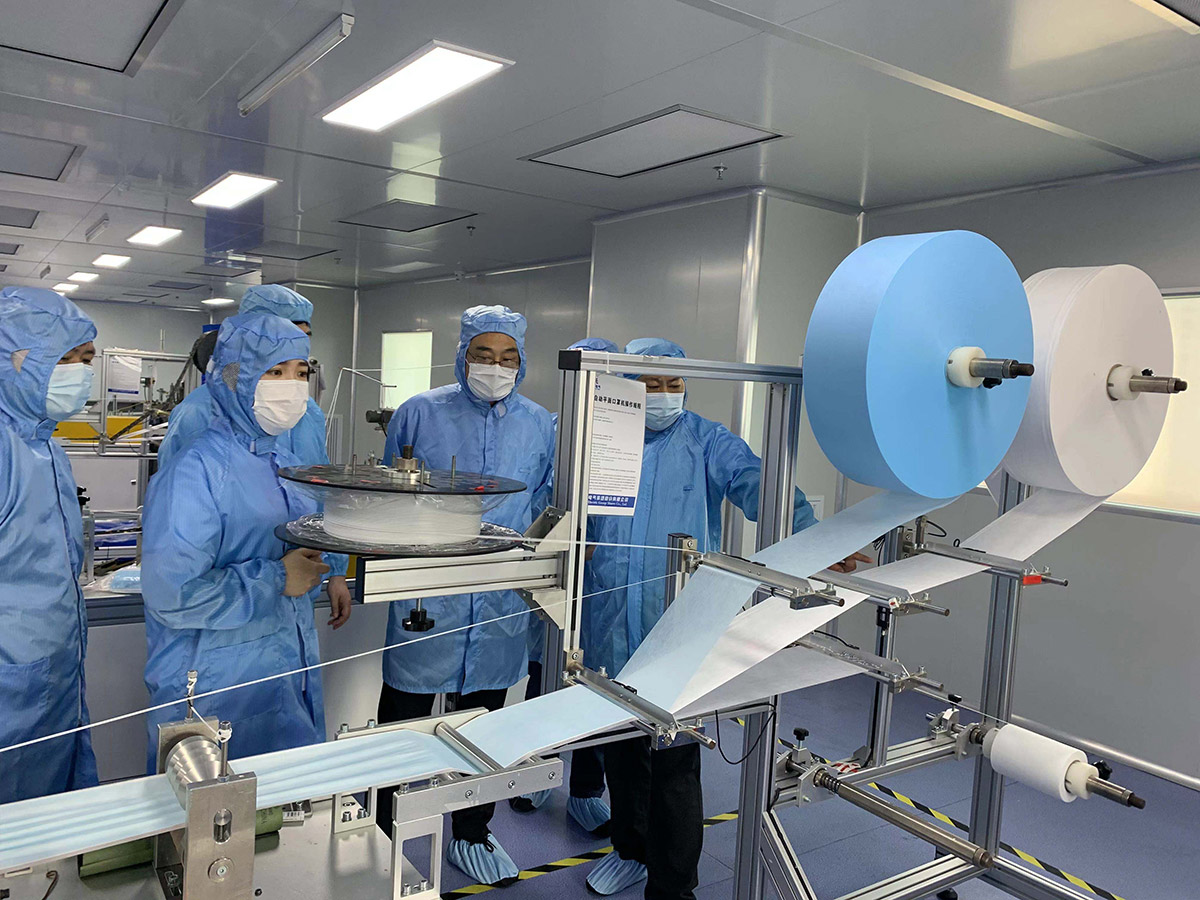 (孫安慶一行體驗安徽電氣雙鼻梁條口罩)